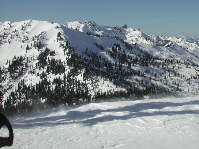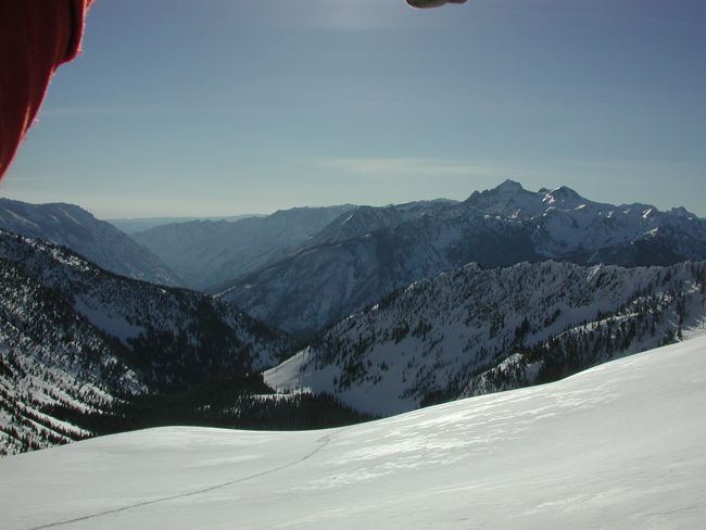 There are several ways to get out of the Chiwaukums, we have been using Chatter Creek and skiing the beautiful basin under Grindstone Mountain. Once down to the floor of Icicle Valley we will have friends pick us up by snowmobile for the 5-mile trip along closed Icicle Road to the Bridge Creek Parking area and the end of our Chiwaukums Ski Traverse. If we play our cards right, we can drive less than a mile and stick our heads into Rob Newsom's Boudreaux Winery for a taste of one of his award winning wines before retiring to Leavenworth for a hot shower and a much deserved dinner.
