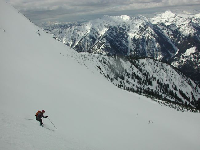 Ski Ability: The Chiwaukum Ski is not an extreme ski route, but it can be a rugged adventure. Simply put, participants need to be decent skiers. Things you should feel comfortable doing include: skiing with a 28 lb. backpack, skiing a wide variety of snow ranging from powder to breakable crust to corn, and climbing and descending 3500-4500' on skis for four days. It is not advised to undertake the Chiwaukum Range Ski Traverse without any experience outside of a ski area. You will want to do some AT skiing in advance of this trip and will want to show up having used your boots in the time prior to the trip.Ski Skills Assessment - Chiwaukum Ski Traverse