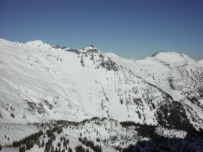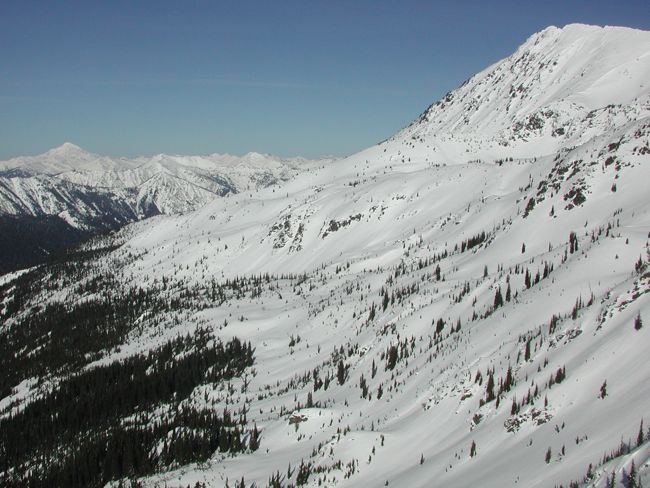 If we were able to ski Big Chiwaukum on Day 2, then this day provides a leisurely trip through somewhat more relaxed terrain enroute to Lake Edna, our final camp. Along the way we have the opportunity to ski some of the 3000 foot runs that drop into the South Fork of Chiwaukum Creek, or to tackle more modest objectives such as Cape Horn (7316). It is possible that we can climb Snowgrass Mountain (7993') the second highest peak in the Chiwaukum Range and ski the huge slopes that make up its East Flank. If we use this day to climb Big Chiwaukum, then the day is a bit busier and we have less time to wander enroute to camp.