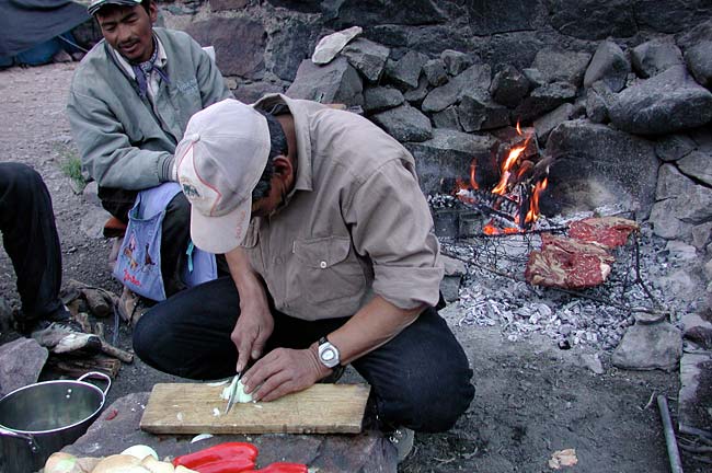 Our Aconcagua climbing strategy is similar to our Denali strategy. We start the trip with a slow, relaxed climb to altitude and build in frequent rest days. Our itinerary has extra days built in which generally give us a sufficiently long summit window with which to wait out storms, minor illness, etc. We operate on the philosophy that it is far better to take a couple of extra days to get the job done the first time then to take another three weeks and try again next year. As we do all the scheduling and are a small company, you don't need to worry about vacating camp for the team behind you or your guides needing to be somewhere else.We do all of the cooking along the way and pack in a substantial kitchen for use at base camp. We have gotten very good at organizing a clean kitchen and camp scene after many years of living outside the US in mountain areas. Many illnesses that strike during a long expedition actually originate within the group and close attention to hygiene amongst the cooks is always worth the effort. It is often not the strongest climbers that reach the summit, just those who still have their stomachs intact.