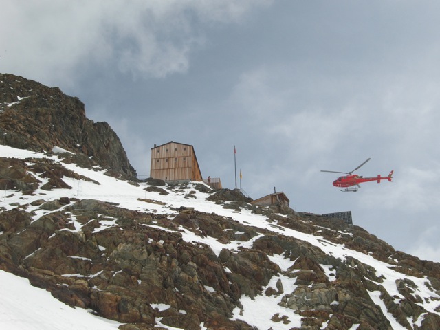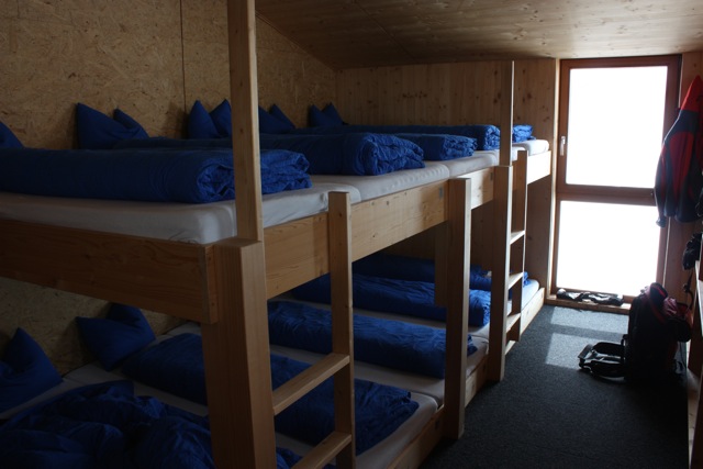 In most of the huts we are given dormitory style lodging. Different people have different opinions of hut living. Most nights we are in bed by 9 p.m. and most mornings we are up by 6 am. Most people staying in huts sign up for the dinner and the breakfast option. Dinners are things like pasta, meat, potatoes, a desert, bread, and soup. Breakfast is generally a very simple affair consisting of bread and jam, coffee or tea, and cheese and is designed to get large numbers of people fed and out the door. You purchase water in the huts and it can be surprisingly expensive. In general expect to spend about $4.25 USD for a liter of water. You can often buy boiled water (made from melted snow or collected rainwater) for about half this. With the exception of the Monchjoch Hut all supplies are flown by helicopter to the huts and thus cost seems to correlate to weight as much as anything.What do we do in the huts?