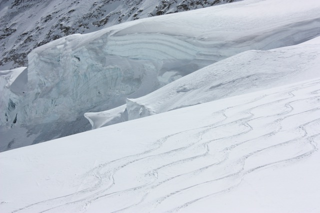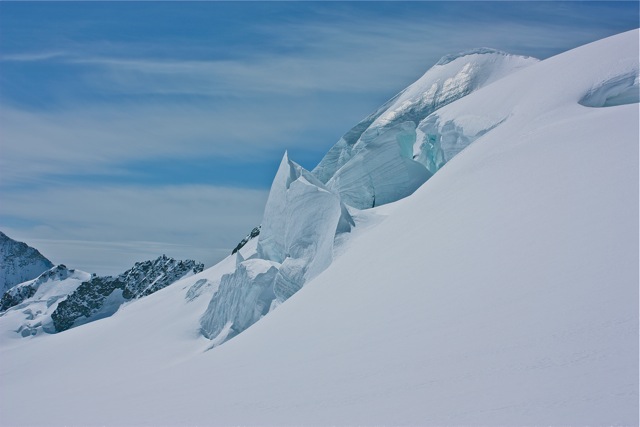 After an early breakfast we will take a series of trains to the Jungfraujoch. Our route follows an improbable tunnel through the Eiger and then onto the saddle between the Monch (4099m) and the Jungfrau (4158m), yet another miracle of Swiss engineering. At the top we can grab a quick espresso before walking out one last tunnel and onto the glacier. Once on the glacier we will review beacon use, basic avalanche rescue procedures, and do some touring. Options for the day include the Monch, a lap up to the Loumitor, or a climb and descent of the Trugberg.