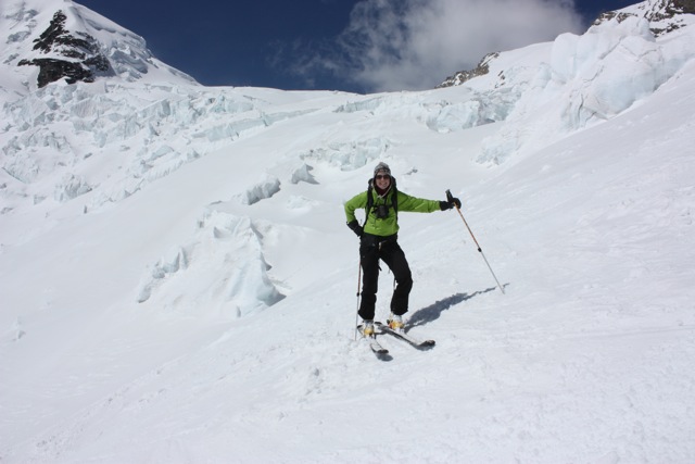 Ski Ability: The Berner Oberland Tour is not an extreme ski route in any way. The Berner does, however, require participants to be decent skiers. Things you should feel comfortable doing include: skiing with a backpack, skiing a wide variety of snow ranging from powder to breakable crust to corn, and climbing and descending 4000-5500' on skis each day for 6 consecutive days. It is not advised to undertake the Berner Oberland ski tour without any experience outside of a ski area. You will want to do some AT skiing in advance of this trip and will want to show up having used your boots in the time prior to the trip.It is not uncommon for people to develop very bad blisters if they go from not touring at all to putting in successive long ski touring days. You should be able to efficiently get down black diamond runs in most ski areas. Again, you do not need to be an extreme skier to do this, but there will be spots where it is best not to fall, and you need to be able to efficiently link turns in a wide variety of snow conditions. You should also be aware that skiing on a glacier is much different from skiing in bounds at a ski area. Real hazards exist in these mountains and none are marked. Prior to your trip you want to focus on skiing in control and being able to ski for long periods without falling. You do not need any previous mountaineering experience to do this, but it is nice to have some level of familiarity with the climbing harness, crampons, and ice axe. We use these items very rarely, but you will be more confident if you show up with some level of comfort with them. You might also consider attending an AIARE Level 1 Avalanche Course in advance of your trip