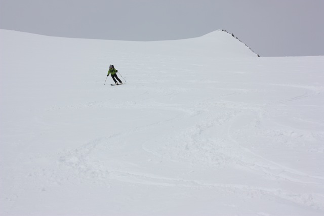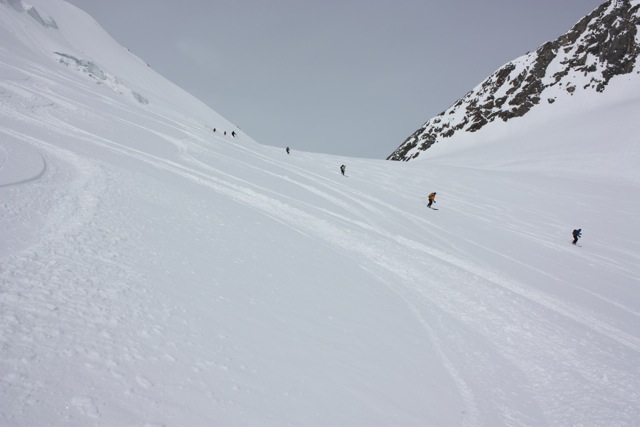 This could end up being the biggest day of vertical on the trip. One option is to wake up early, climb the Gross Wannenhorn (3905m), and then make the journey over to the Oberaajoch Hut in preparation for our final descent into the Rhone Valley the following day. The ski off the Gross Wannenhorn is a spectacular descent of nearly 1000 meters down a very scenic glacier. For those feeling light on energy, there is always the option to skip the Gross Wannenhorn and go directly to the hut.