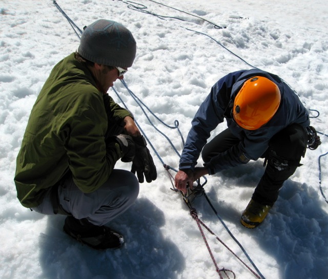 11:30am - 12:45pm: Demonstrate and practice basic crevasse rescue systems with focus on perfecting c systems, z systems, and simple scenarios. Learn to calculate loads.