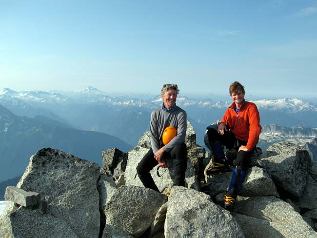 Eldorado Peak is a good destination for a basic mountaineering seminar or for climbers seeking a 5 or more day tour of some really good moderate rock climbs. The most basic itinerary usually requires 1 day for the approach, 1 day for the climb, and 1 last day for the exit. Other climbs in the area which we guide include: the Southwest Face of Early Morning Spire (Grade III+, 5.9), the Northwest Ridge of Dorado Needle (Grade III, 5.4), the Southwest Buttress of Dorado Needle (Grade III+. 5.7 w. 35° snow), and the Northeast Face of Eldorado Peak (II+, 50° snow and ice).Qualifications