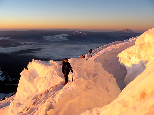 You need no previous climbing experience to do this climb, but you do need to be in very good condition and must be able to carry a backpack weighing as much as 40 lbs. We will help you choose the right gear, but there is a real art to packing light and if you don’t, your pack will weigh considerably more. People very often underestimate the difficulties required to climb Mt. Rainier. In the words of a sage mountain guide, "You cannot overtrain for a climb of Mt. Rainier." Please contact the office for advice on training or to discuss the difficulties of the trip before committing to your spot.