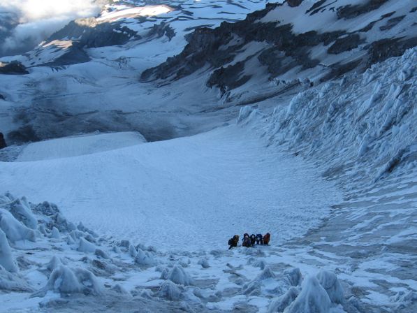 In addition to making a summit bid, this climb of Mt. Rainier is organized as a basic mountaineering seminar and involves training in use of the ice axe and crampons, crevasse rescue, ice climbing, and other basic skills needs for climbing big glaciated peaks. This program would serve as a very good component for climbers looking to train for a Denali Expedition or Aconcagua Expedition.