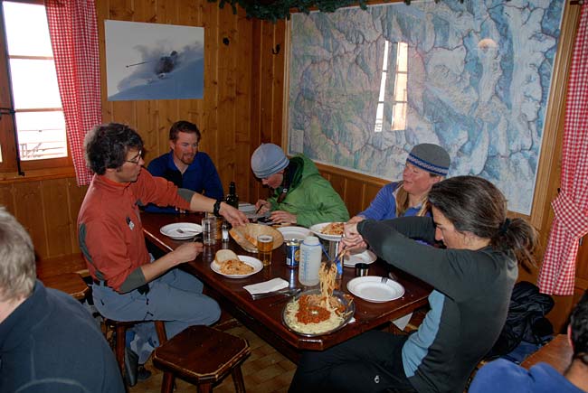 At the end of some days (particularly sunny ones) people often stop in the hut for lunch and then after lunch go back out to ski. On some days we may decided to nap, play cards, or read in the afternoon prior to dinner. Usually after dinner everyone puts in breakfast orders, we settle our bill with the hut manager, and retire early in preparation for an early start.Insurance Considerations
