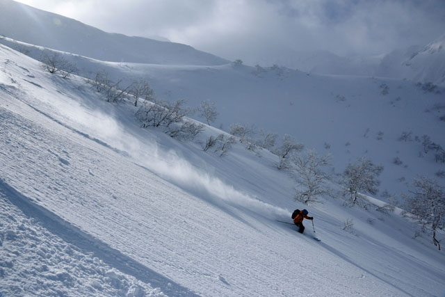 Day 5: We will base in Furano for the reminding three days of our tour. This area is known as the Hokkaido Powder belt and has a much more remote feel than the areas we have visited earlier. The mountain summits are a bit higher and have a wilder quality. Skiing will be a mixture of summit climbs and tree skiing, depending on the current weather & conditions. Today we will make a short drive from our guest house and ski tour on the flanks of Furano-Dake, in Daisetsuzan National Park. The skiing consists of several climbs up elegant ribs followed by great powder skiing in the chutes and glades on either side of the ribs. In good weather we can poke up high and in more typical weather we can ski the trees down low.