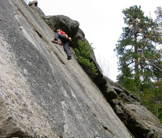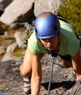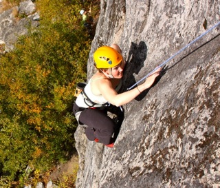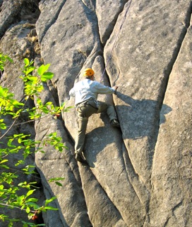 We begin the day with a safety discussion highlighting the hazards present at a given rock climbing area. Your guide then shows you how to put on your climbing harness and helmet. We like to put people on the rock early in the program, using a climbing top-rope, so that new climbers can immediately get a feel for some of the basic movement concepts involved in climbing rock. You will learn to tie a figure eight knot, how to belay, and how to rappel. The flow of the day combines actual climbing interspersed with a review of the different techniques and skills needed to manage risk and maximize your climbing ability. You will be exposed to various types of climbing including crack climbing, face climbing, and slab (friction) climbing. You will also learn how to use equipment such as locking carabiners, belay-rappel devices, and climbing helmets. We will also discuss differences between sport and trad (traditional) climbing and explain climbing ratings.