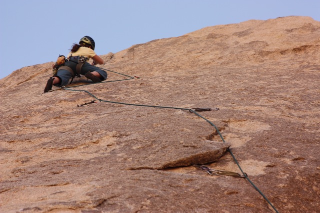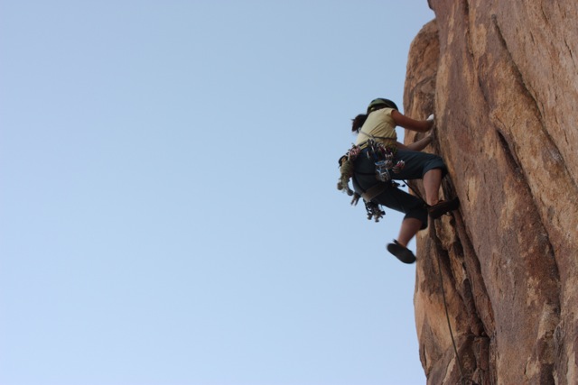 The course is structured in a way that allows women who are interested to get out and do longer routes and classics like: Double Dip (5.6), SW Corner of Headstone Rock (5.6), Overhand Bypass (5.7), Stichter Quits (5.7), Walk on the Wild Side (5.7+), Dappled Mare (5.8), Stick to What (5.9), Touch and Go (5.9), Bird on a Wire (5.10a), Solid Gold (5.10b) and many others. There are over 4000 named routes in Joshua Tree, so there is no chance you will ever hit all the routes in your grade.