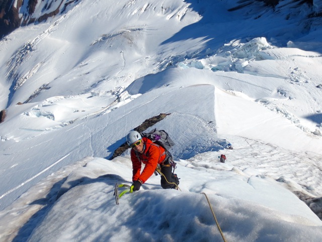 In order to join our North Ridge of Mt. Baker climb you need to have suitable ice climbing skills, including comfort climbing steadily and efficiently for up to 12 pitches of 45-50 water ice with short steps of steeper ice. If you would like to polish your ice climbing skills, we can often schedule a day of ice climbing on the lower Coleman Glacier prior to your climb. You should also be familiar with belaying, removing ice screws and pickets, and have solid rope travel skills.Other routes we guide on Mt. Baker