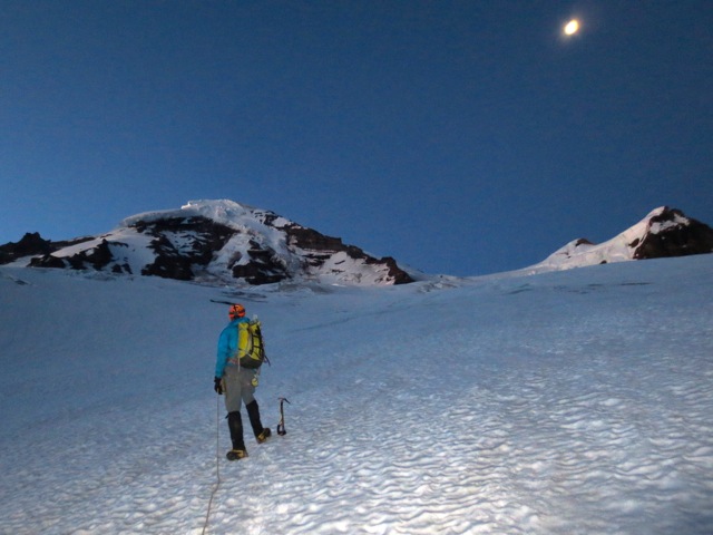 Baker North Ridge Day 2: Up early, we must first negotiate the often very broken Coleman Glacier to the base of the route at 7,800' We will often have scouted and marked this route the night before in order to speed our approach in the morning. The route tends to slowly get steeper and more complicated as the season progresses.