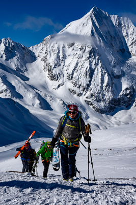Tour options from the Branca include the Pizzo Tresero (3595m), Punta San Matteo (3678m), Palon de la Mare (3704m), Monte Pasquale (3553m) or Cima Branca (3100m). On many of these peaks we ski to very close to the summit, stash our skis, and then put on crampons for the final short climb to the top.