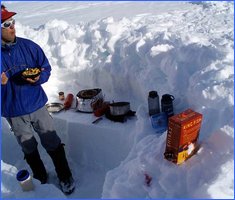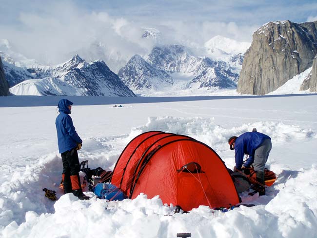 Day 2: Fly into the Ruth Gorge (weather permitting) mid-afternoon and establish a base camp on the Ruth Glacier. Generally most of the afternoon and evening is spent building a comfortable base camp.