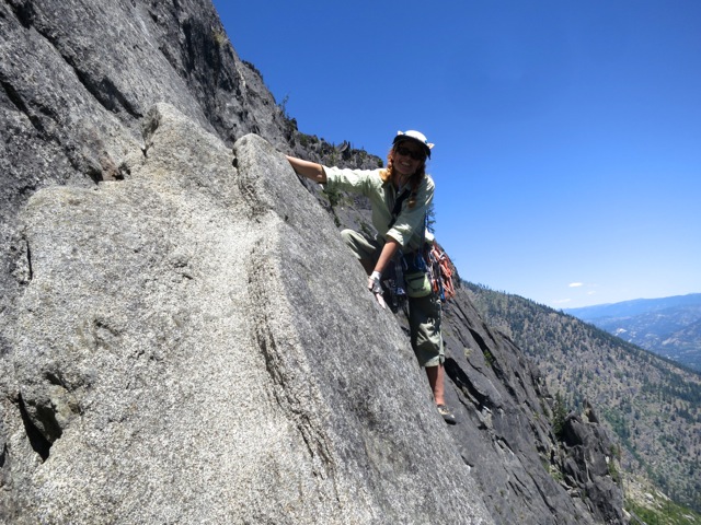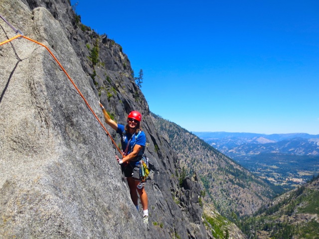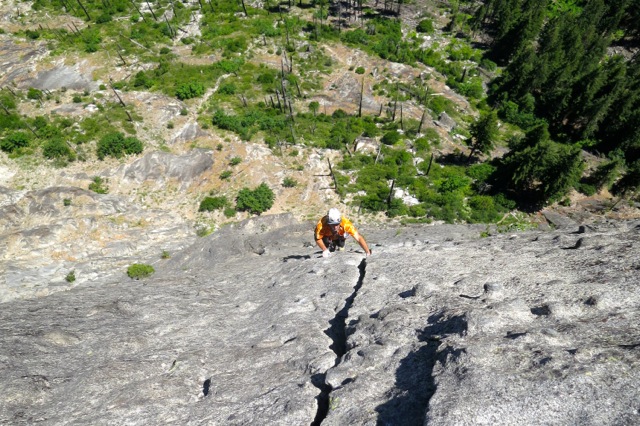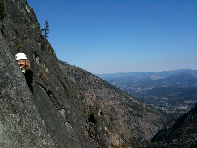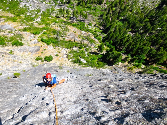 Outer Space is one of the most well-know rock climbs in Washington State. It was featured in Fred Beckey's Book, 100 Favorite Climbs in North America, and Fred was in the first ascent party. This is a 7-pitch climb and features high-quality climbing on solid granite. The crux is an exposed traverse on the 3rd pitch, which provides access to the stellar 5.7-5.8 hand crack found on pitches 5 and 6. Solid granite, crazy chicken heads, comfortable belays, and nice exposure combine to make the headwall pitches on Outer Space some of the most memorable climbing in the area. We had the good fortune to climb the route with the legendary John Sherman and he was heard to utter, "This may be the nicest multi-pitch 5.9 route I have done."