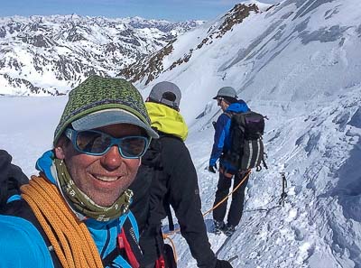 Pete primarily guides for NMS in Europe and is the owner/director of Timberline Mountain Guides. Pete started climbing in 1982 and guiding in 1989 and is a member of the AMGA Instructor Team where he trains the next generation of certified guides. Pete has extensive climbing experience including ascents of routes such as Denali's Cassin Ridge, Ham and Eggs on the Moose's Tooth, Kahn Tengri in Kyrgystan, and has made an attempt on the Bonnington Route on the South Face of Annapurna I. Pete lives with hi wife Julie in Bend, OR and his two sons. We love working with Pete because he is solid, funny, and above all really fun to be in the mountains with.