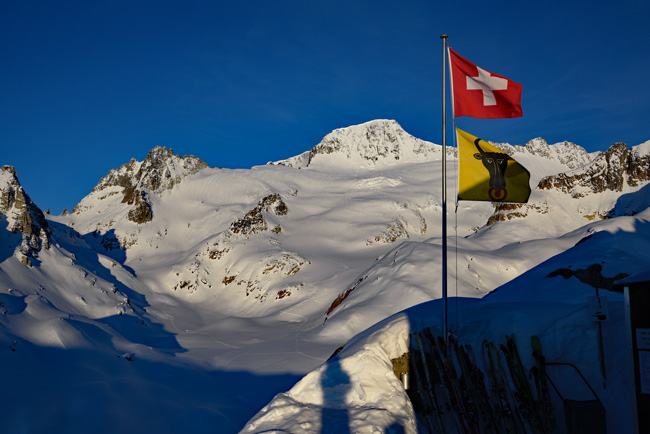 We move south to north, allowing us to ski up more sun affected slopes and descend more shaded north slopes, increasing powder potential. Andermatt is located just down valley from three of the great passes of the Swiss Alps: the Oberlap to the east, St. Gotthard to the south, and Furka to the west. Andermatt is a pretty small place known for excellent off-piste and free-ride terrain and nearby Realp is a less known ski touring mecca.