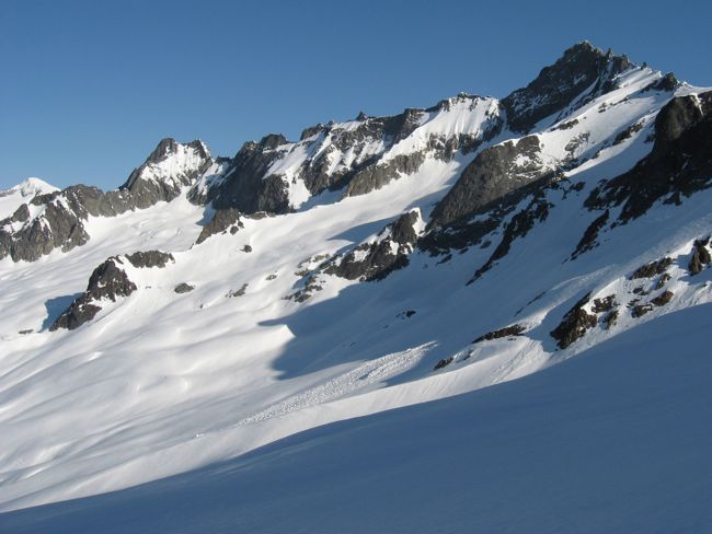 On our last day we have the option to spend the morning touring before dropping over into the Rousch Creek drainage and working our way down the climbers approach trail leading back to the Eldorado Creek Parking area. Energetic groups might want to summit Eldorado and ski from the summit, while others may prefer to explore the Inspiration Glacier and its many climbable summits.